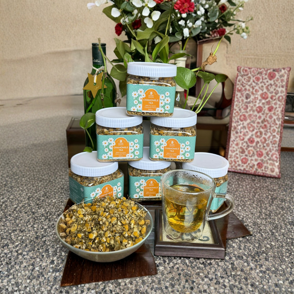 Unwind with the gentle calm of Achari Duniya’s Chamomile Tea, made from carefully dried chamomile flowers to retain their natural aroma and soothing properties. Known for its delicate floral notes, this herbal infusion offers a comforting and relaxing experience with every sip.